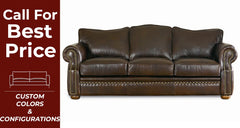 The Laredo is a flagship style of ours available as shown, and with “Designer Leathers” or “Exotic Leathers” as they are also known. Scalloped back with individually placed nail heads that follow the backs contour. Large nail heads accent the bottom seat rail just below the seat that are spaced. Nail heads that are individually placed that are touching on the front arm panels that have a special inward concave to them as a special look to this style. Wood Legs with multiple color finishes are available. Welt highlights the seat and back cushions as well as following the bottom rail and front arm panel inset. This style has a ton of attributes that you won’t find in this price range. Create a look that is all yours.